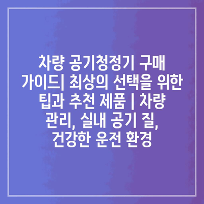 차량 공기청정기 구매 가이드| 최상의 선택을 위한 팁과 추천 제품 | 차량 관리, 실내 공기 질, 건강한 운전 환경